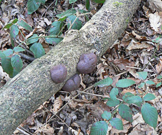 | [i] | Hypoxylon (aka Nemania) serpens | none | Thick black crust with rounded papillate surface on dead wood. | VG1 |