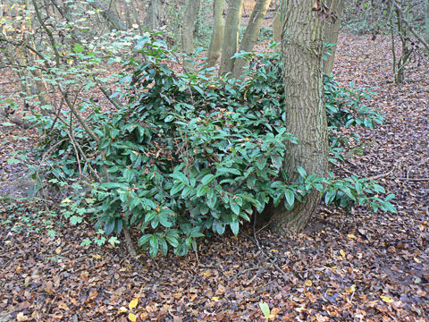 In addition to the native species, there are several naturalised alien trees and shrubs within the wood, largely seeded as escapes from gardens. The most noticeable of these are: