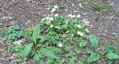 Note that the elongated leaeves in front of the flower are Goosegrass.